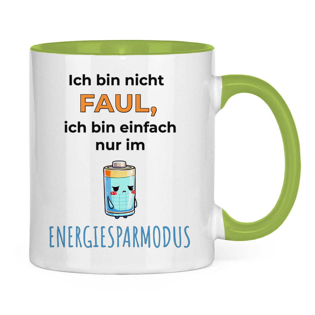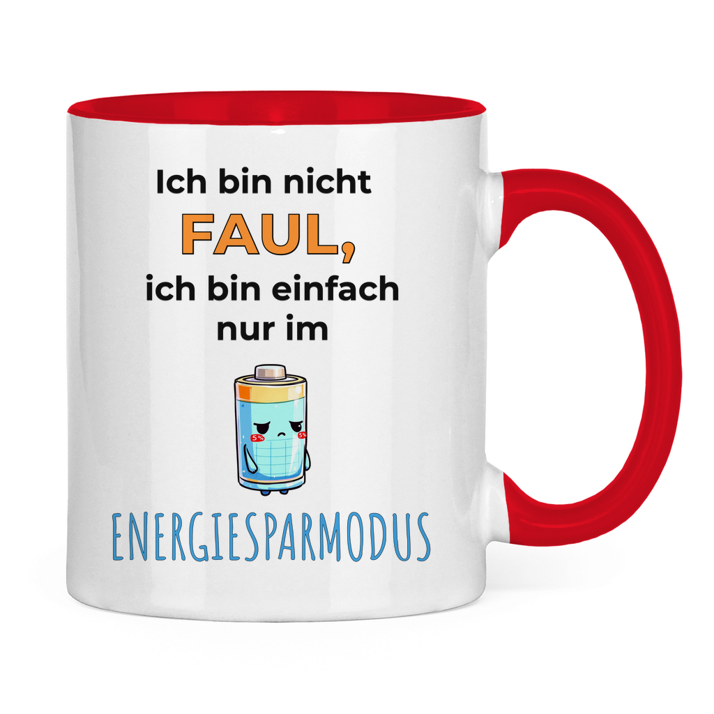 Ob fürs Büro, als Geschenk für Kollegen, Freunde oder Familie – unsere zweifarbige Sprüche Tasse 'Ich bin nicht faul, ich bin einfach nur im Energiesparmodus' bringt Humor und Persönlichkeit in jeden Schluck. Mit hochwertigen Drucken und witzigen Sprüchen wird jede Kaffeepause zum Highlight. Die lustige Tasse ist ideal für alle, die originelle Geschenkideen mit Witz suchen – sei es zum Geburtstag, für Kollegen oder einfach als kleiner Alltagsaufheller.