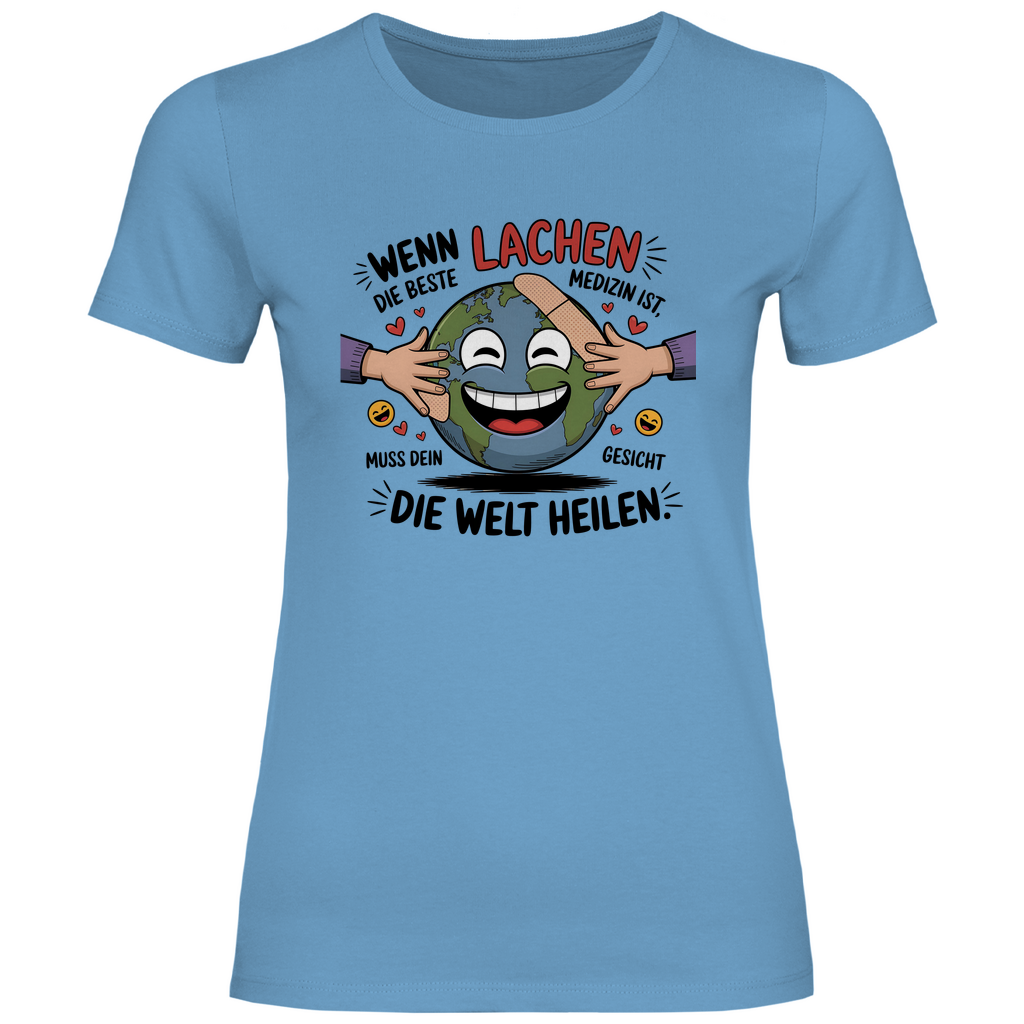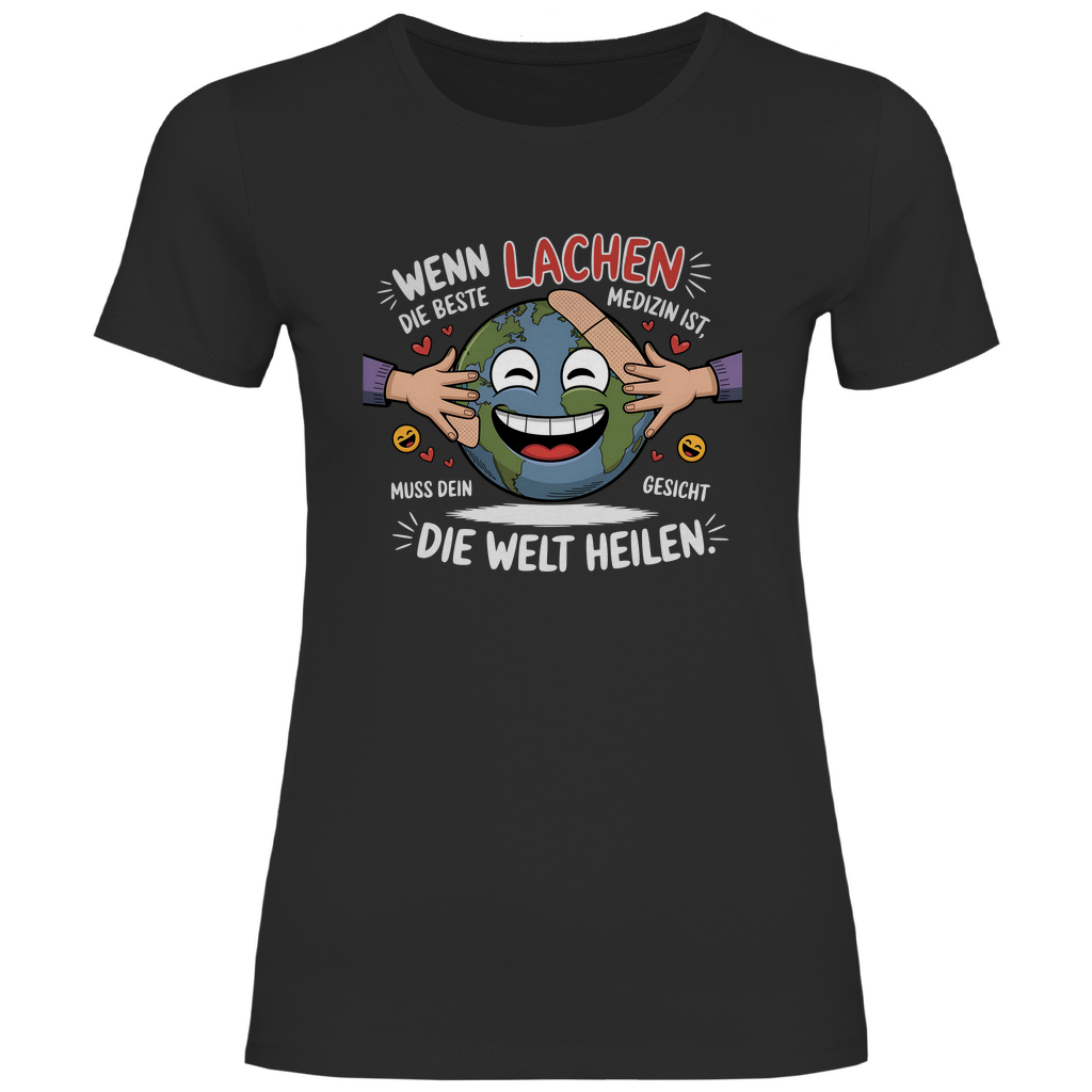 Lustiges T-Shirt "Wenn Lachen die beste Medizin ist, muss dein Gesicht die Welt heilen." Damen